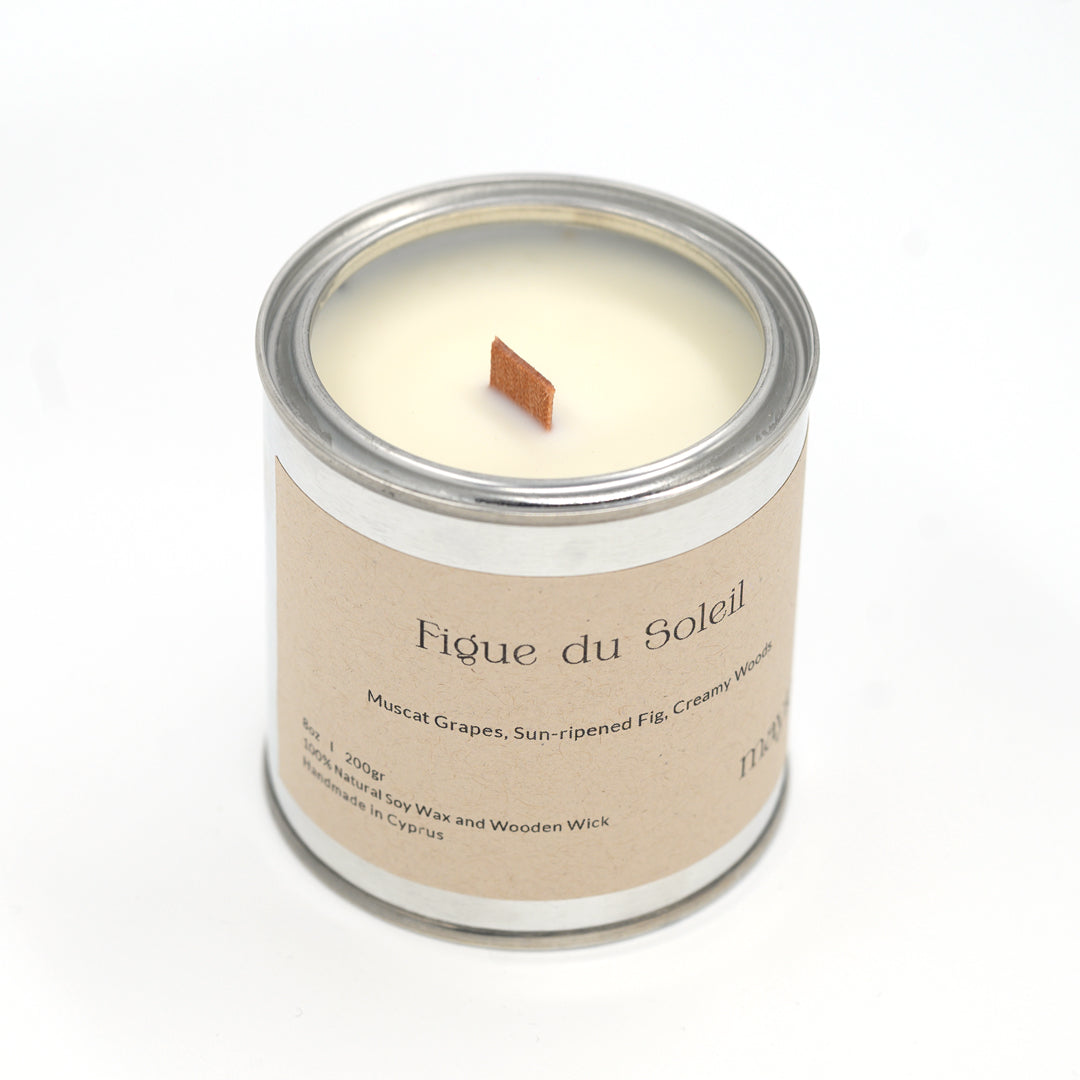Hand-poured in Cyprus with a clean burning wax blend and a natural wooden wick. Packaged in a simple silver tin with a kraft label minimal, warm, and easy to take anywhere.